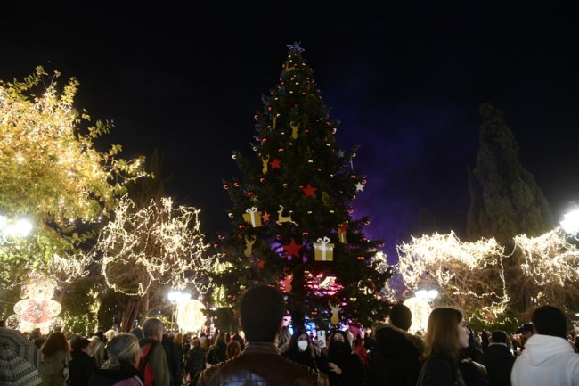 Το πανέμορφο έλατο που και φέτος “ταξίδεψε” στην Αθήνα από το Καρπενήσι, φωτίζεται από 40.000 λαμπάκια, μήκους 5 χλμ. και διακοσμείται με εκατοντάδες μπάλες και στολίδια.